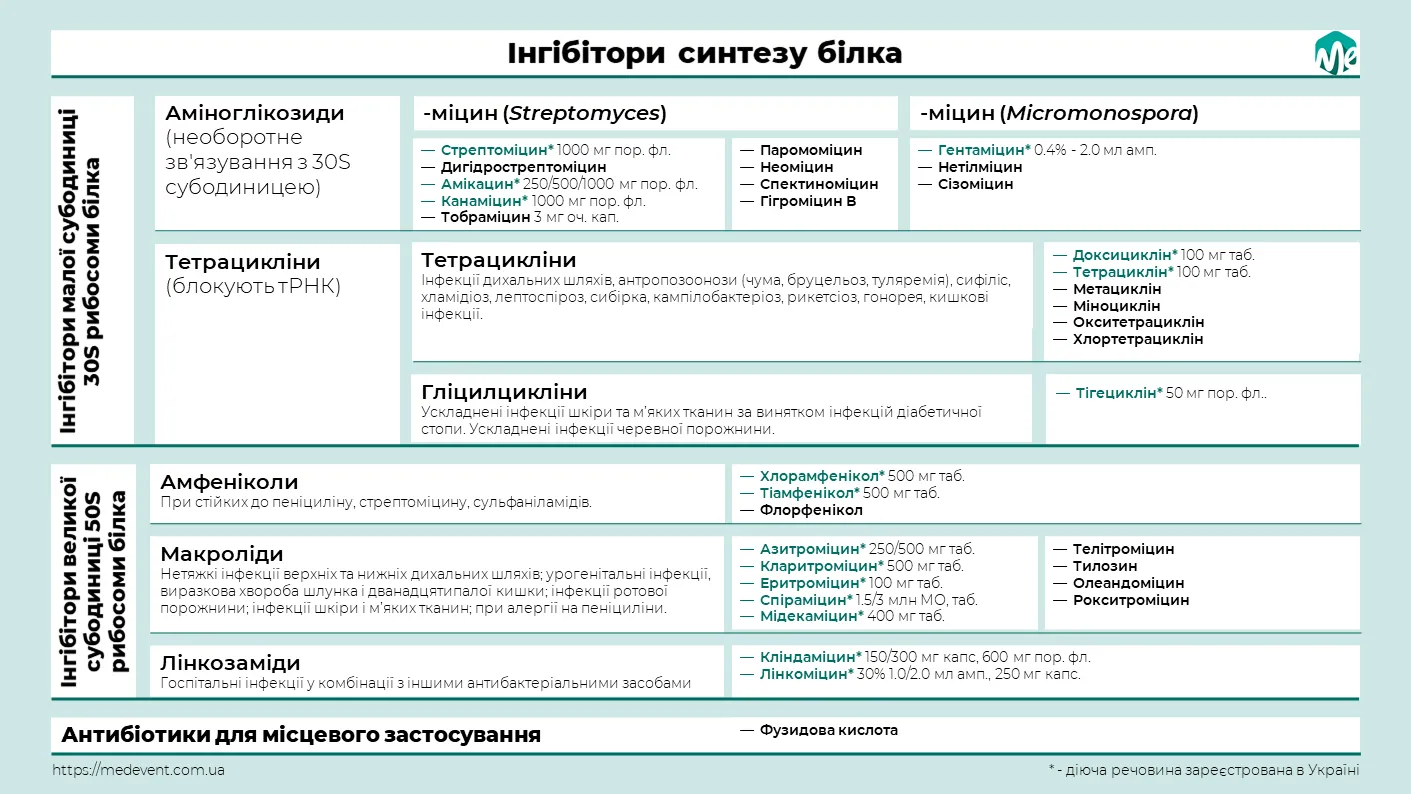 6. Швидка орієнтація в основних класах антибіотиків та їх клінічному призначенні.